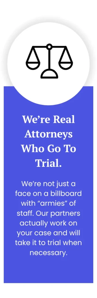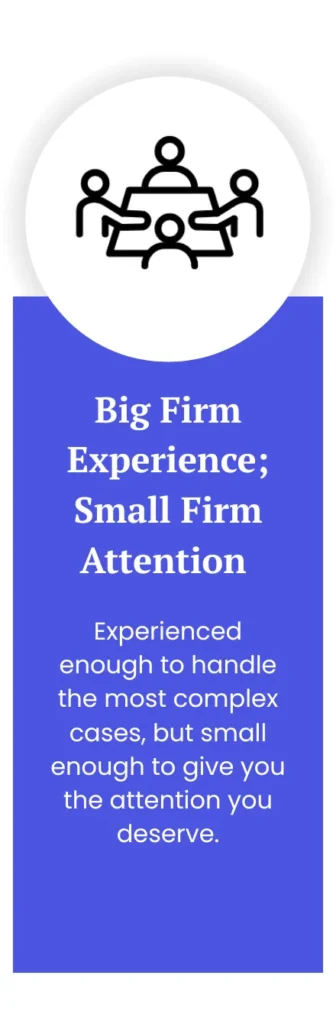 We bring that experience to our clients’ cases, but with the personal attention and care of a small firm. We maintain a relatively small case load of strong cases and are not a “mill” like some other personal injury lawyer firms that have hundreds upon hundreds of cases. We treat our clients like family, not a number.